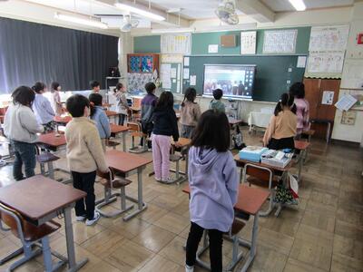 本日は、令和5年度修了式が行われました。感染症対策のため、急遽オンラインで進められ、子どもたちは自分の教室から配信を視聴しました。