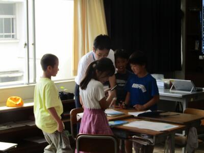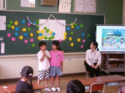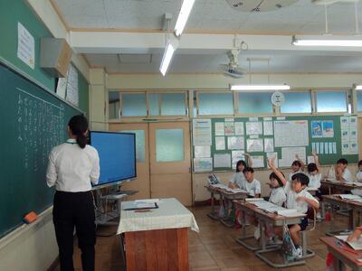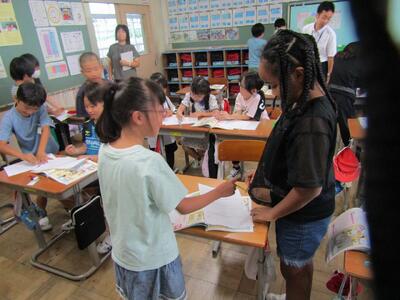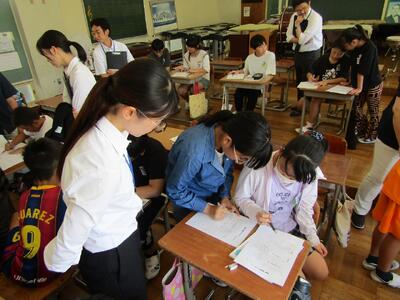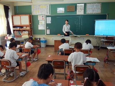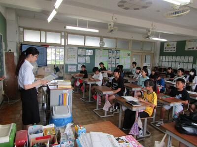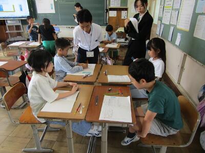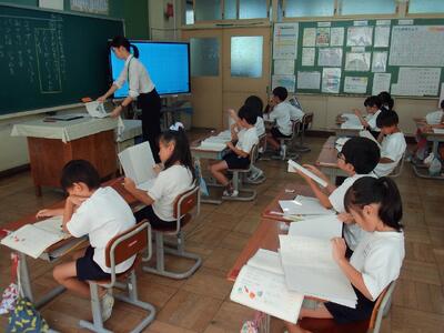 たくさんの人が参観し、子どもたちは少しそわそわした様子でしたが、実習生の先生の話をよく聞き、一生懸命考えながら取り組んでいました。授業の中では、友達と相談したり発表したりする姿も見られ、いつも以上に意欲的な表情がたくさん見られました。