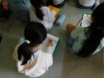 各クラスではお別れ会が開かれ、ゲームをしたり、子どもたちから心のこもったプレゼントを渡したりしました。楽しいひとときの中にも、「さようなら」が近づくにつれて寂しさが募り、帰り際には涙を見せる子の姿もありました。