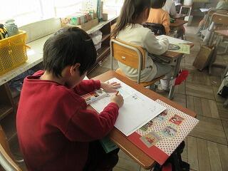 生活科の学習では、アルバムづくりを行っています。1年間を振り返って、がんばったこと、できるようになったこと、うれしかったことなどをアルバムにまとめています。完成したら宝物になりますね。