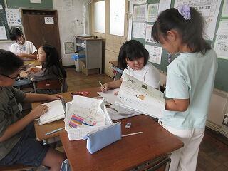 4年生は、国語の「新聞を作ろう」の学習で、新聞作りに取り組みました。どんな内容の記事にするかグループで話し合い、校長先生をはじめ先生方にインタビューしたり、クラスのみんなにアンケートを取ったりしながら進めました。