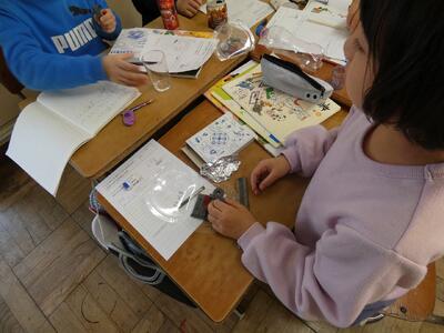 3年生 じしゃくのふしぎ 投稿: 作成者 (16:31) 理科の「じしゃくのふしぎ」の学習では、どのようなものが磁石に引きつけられるのかを調べました。 「電気の通り道」の学習で金属が電気を通すことを知り、磁石も金属が引きつけられると予想して実験しました。 しかし、予想と違って「銅はつかない」「アルミニウムはつかない」など驚きの声が聞かれました。 -
