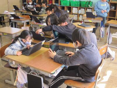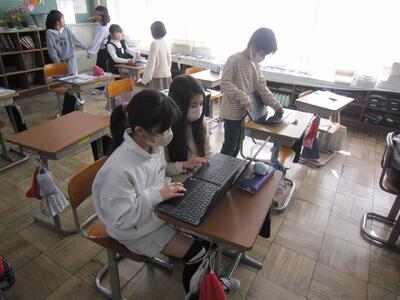 総合的な学習の時間では、4月から取り組んできた「日立すてき発見」の学習がいよいよまとめの段階に入りました。子どもたちは完成したスライドをもとに、発表用の原稿作りに取り組んでいます。
