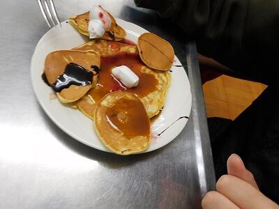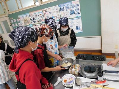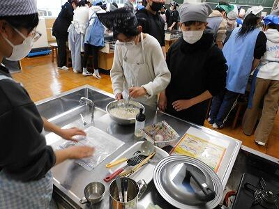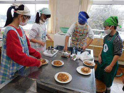 お楽しみ調理実習 (6学年) 投稿: 作成者 (15:19) 本日、6学年でお楽しみ調理実習を行いました。 今回作るのは「ホットケーキ」です! 分量を量り、生地を混ぜて、焦げないように様子をじっくり… 班の友達と協力しながら、とてもおいしそうなホットケーキが完成しました! -