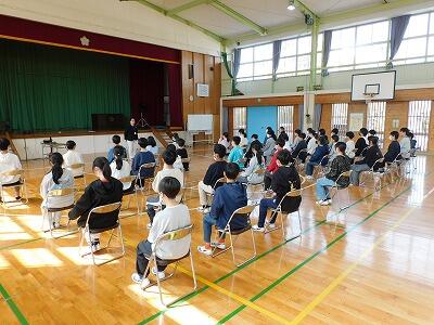 6年生 卒業式練習 投稿: 作成者 (15:04) 少しずつ日差しが暖かくなり、あっという間に3月を迎えました。 6年生は、先日からいよいよ卒業式の練習がスタートしています。 先日は、校長先生、星先生から卒業式を迎えるための心構えについてのお話を聞きました。 6年生は姿勢を崩すことなく、真剣に話を聞いていました。 卒業式で立派な姿をみせることができるよう、日々の練習に励みたいと思います。 -