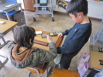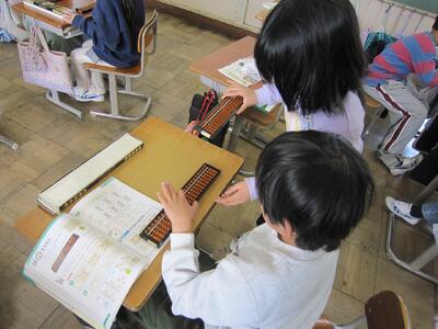 算数では、「そろばん」の学習が始まりました。