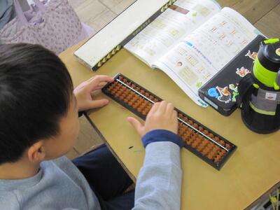 そろばんは、数の大きさや仕組みを実感しながら学べる、数感覚を養うよい教材です。これからも楽しみながら学習を進めていきたいと思います。