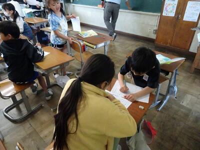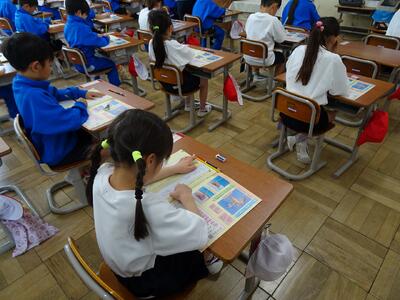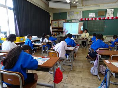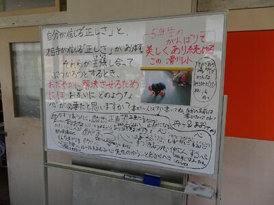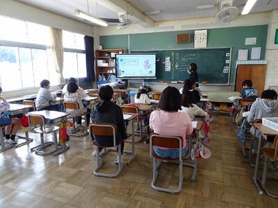 3年生は道徳の時間に、「あいさつ名人になるにはどうすればよいか」をテーマに話し合っていました。友達と意見を交換しながら、よりよいあいさつについて考えを深めていました。「次、一緒に話そう」という声も聞こえ、活発に交流する様子が見られました。